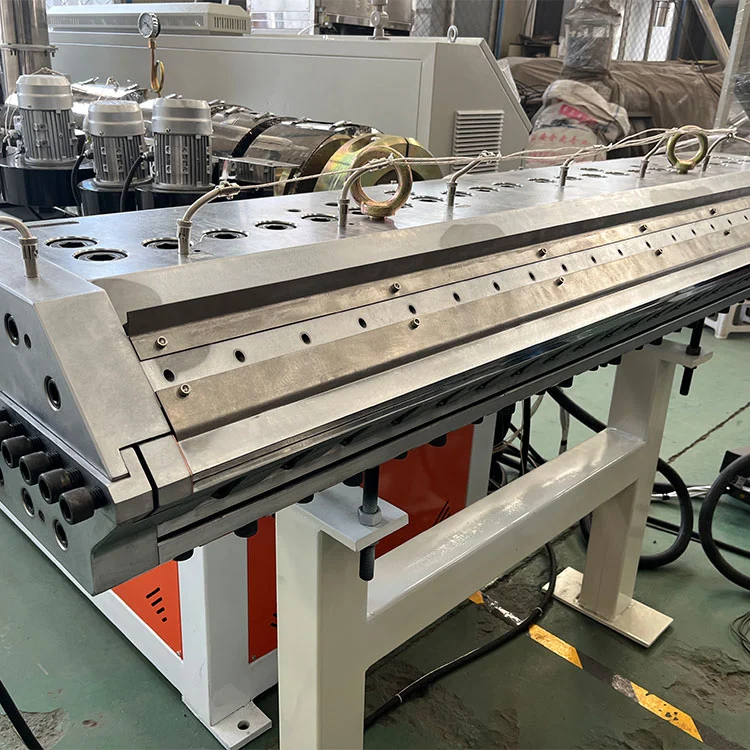 Schimmelmaterial: hochwertiges Schimmel -Stahlschmieden und -Temperieren, harte Chrombeschichtung, Polierbehandlung Der Tellerkopf mit einem Kleiderbügel ist 1-6 mm dick und 1 0 00 mm breit Die effektive Breite der Form beträgt 1 15 0 mm pro Satz Die Heizleistung beträgt 1 5 kW und die interne Heizmethode wird angewendet Temperaturregelungszone Abschnitt 5 Der Kopfflusskanal besteht in Form eines allmählichen Flusskanals des Kleiderbügelentyps, und der Kopf besteht aus hochwertigem Legierungsstahl 5crnimo, poliert nach Chrombeschichtung. Die obere Matrizenlippenanzeige Mikroanpassung.