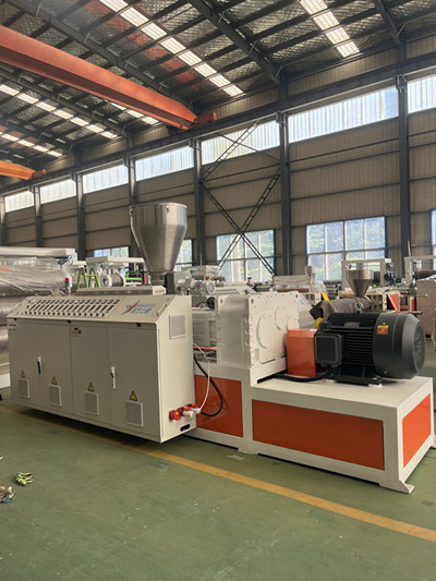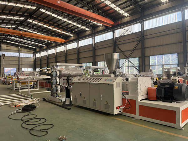Prinzip: Die PVC-Vormischung wird dem Extruder zugeführt, von der Schnecke erhitzt und geschert und dann durch eine Flachdüse zu einer Platte extrudiert. Das Blatt wird dann abgekühlt, ausgehärtet und geschnitten.