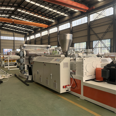 Das gemischte Rohmaterial gelangt über eine Schneckenzuführung in unseren Doppelschneckenextruder. Durch die Erhitzung der Schnecke wird der Kunststoff geschmolzen. Das geschmolzene PVC durchläuft eine T-Düse, um einen Plattenzuschnitt zu bilden.
