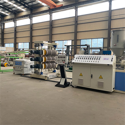 Die getrockneten PS-Partikel werden über eine automatische Zuführvorrichtung zum Extrudertrichter transportiert. Die Extruderschnecke schmilzt die festen PS-Partikel durch Rotation und externe Erwärmung nach und nach zu einer gleichmäßigen Schmelze auf. Die Schmelze wird zur T-Düse (flacher Fließkanal) gedrückt, um vorab die Breite des Blechs zu bestimmen. Der Schmelzefilm gelangt in den Dreiwalzenkalander und wird dort schnell verfestigt und geformt. Das geformte Blech wird von der Zugmaschine mit gleichmäßiger Geschwindigkeit gezogen und die Grate werden von der Besäummaschine entfernt. Schließlich wird es vom Wickler zu einer regelmäßigen Spule aufgerollt.