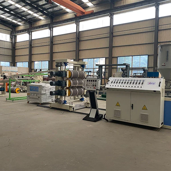Die getrockneten PS -Partikel werden über ein automatisches Fütterungsgerät zum Extruder -Trichter transportiert. Die Extruderschraube schmilzt die festen PS -Partikel allmählich in eine gleichmäßige Schmelze durch Drehung und äußere Erwärmung. Die Schmelze wird auf den T-Die (Flat Flow-Kanal) gedrückt, um die Breite des Blattes vorläufig zu bestimmen. Der Schmelzfilm tritt in den Drei-Roll-Kalender ein und wird schnell verfestigt und gebildet. Das geformte Blatt wird von der Traktionsmaschine mit gleichmäßiger Geschwindigkeit gezogen, und die Grat werden von der Trimmmaschine entfernt. Schließlich wird es vom Wickler in eine reguläre Spule gerollt.