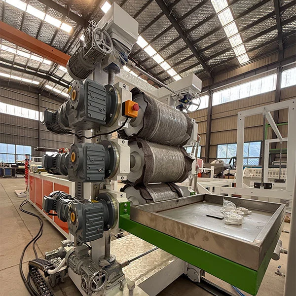 Die TPU-Blechform verwendet einen verchromten, spiegelgefertigten T-Derkopf. Das Strömungswegdesign ist symmetrisch und glatt, ohne tote Flecken, um eine gleichmäßige Schmelzverteilung zu gewährleisten. Der Lip-Lip-Lücken ist fein abnehmbar (mit einer Genauigkeit von 0,01 mm), die sich den Blechdicken von 0,1 bis 5 mm anerkennt. Die TPU-Blatt-Extruder-Maschine ist mit einer Kühl- und Formeneinheit mit drei Roller ausgestattet. Die Rollenoberfläche ist spiegelgepoliert und die Kühlwassertemperatur wird durch ein System mit konstanter Temperatur gesteuert. Dies ermöglicht eine schnelle Abkühlung und -formung und sorgt gleichzeitig für eine glatte, kratzfreie Oberfläche. Die Flachheit und Dicke -Toleranz des Blattes (innerhalb von ± 0,03 mm) werden durch den Druck zwischen den Rollen gesteuert.