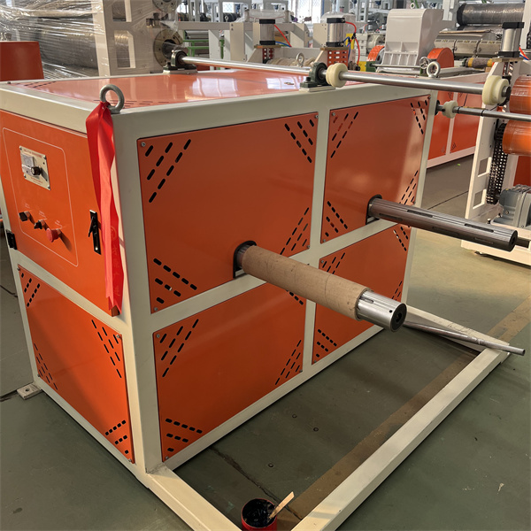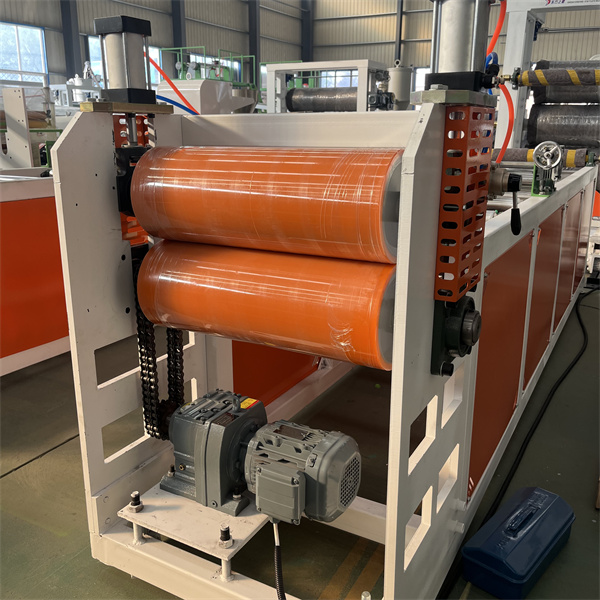Die TPU-Plattenform verwendet einen verchromten, hochglanzpolierten T-Matrizenkopf. Das Fließwegdesign ist symmetrisch und glatt, ohne tote Stellen und sorgt so für eine gleichmäßige Schmelzeverteilung. Der Düsenlippenspalt ist fein einstellbar (mit einer Genauigkeit von 0,01 mm) und eignet sich für Blechdicken von 0,1 bis 5 mm. Die TPU-Folienextrudermaschine ist mit einer Dreiwalzen-Kühl- und Formeinheit ausgestattet. Die Walzenoberfläche ist hochglanzpoliert und die Kühlwassertemperatur wird durch ein Konstanttemperatursystem geregelt. Dies ermöglicht ein schnelles Abkühlen und Formen und sorgt gleichzeitig für eine glatte, kratzerfreie Oberfläche. Die Ebenheit und Dickentoleranz des Blechs (innerhalb von ±0,03 mm) werden durch den Druck zwischen den Walzen gesteuert.